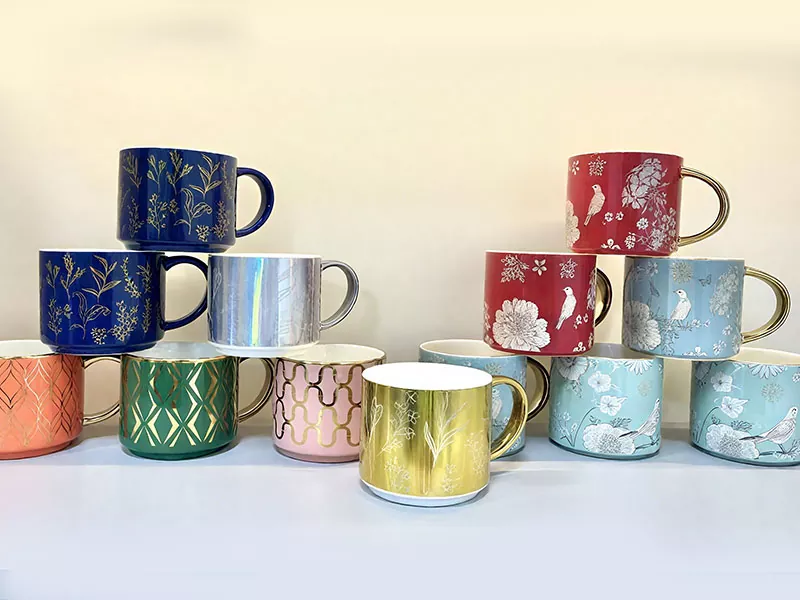 1. Mug Keramik: Pambuka stendare sing awet nganggo logo khusus, netepi standar safety EU lan AS.