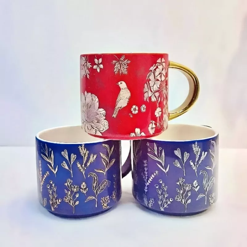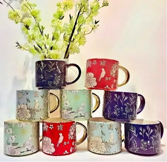Bodo keramik iki nganggo gagang emas sing elektrol, digawe kanthi keputusan, nggawe pesona unik inspirasi dening alam. Apa tekstur sing mekar kembang mekar, bentuk sregep saka manuk nimble, utawa pola blok warna sing apik, bodo kasebut nangkep hadiah flora, fauna, lan warna sing sregep. Kanggo cocog karo saben gaya, gagang mug disesuaikan. Versi sing dilengkapi emas sumunar karo sugih, emas emas sing meh padha karo emas 18K, nambah sentuhan kecanggihan. Sampeyan uga bisa disesuaikan karo warna favorit.