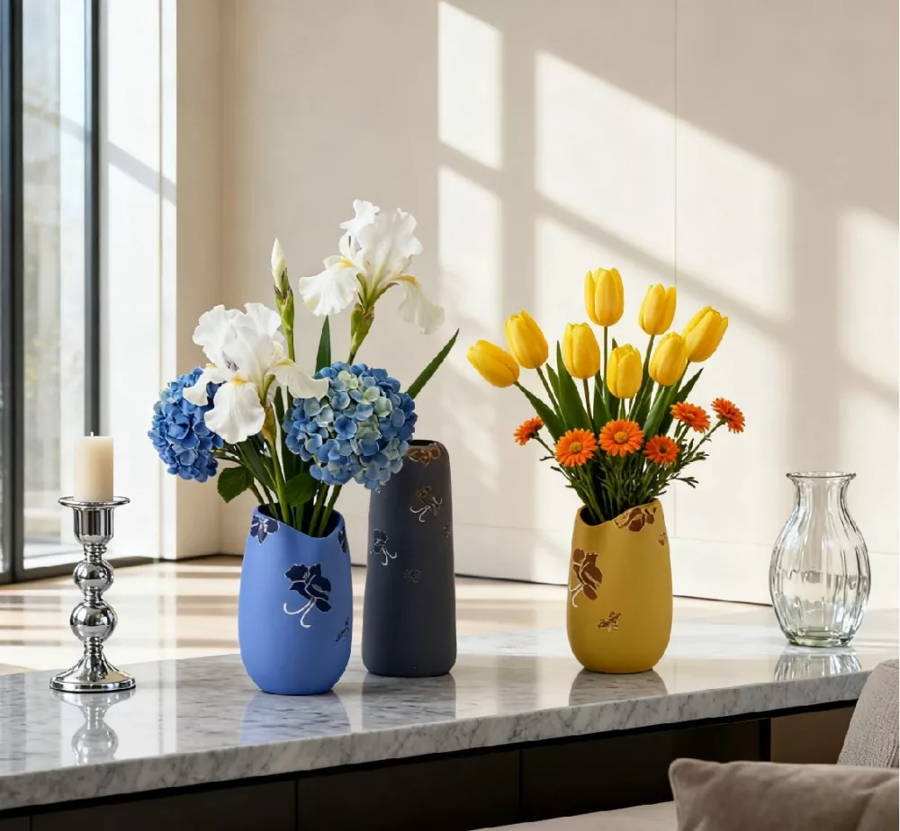Seri keramik vas sing cerdas campuran pesona klasik, seni sing dicet tangan, lan kabutuhan urip modern. Dheweke dadi kontaner kembang praktis lan karya seni sing bisa dikumpulake, papan urip kanthi anget mileniia sing elegan kanggo main-main.