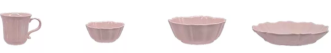 Set bokor keramik pink Macaron kalebu sangang potongan (mangkuk, piring, piring jero, teacup, lan teapot). Produk serba guna iki bisa disesuaikan kanthi individu utawa minangka set lengkap kabeh sanga. Kasedhiya kanthi ukuran sing cocog karo saben acara pokok, saka bokor sereal sarapan kanggo piring nedha bengi kanggo gawan teh sore, sawijining pesawat caters menyang macem-macem kabutuhan.