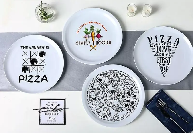 ● Keramik keramik sing digawe tangan: digawe saka keramik berkualitas tinggi, saben piring dicet nganggo pola pizza-tema (kayata ati, lan slogan). Saben piring minangka karya seni sing unik, alus lan alus kanggo tutul, nggabungake teknologi tek tektur lan visual.