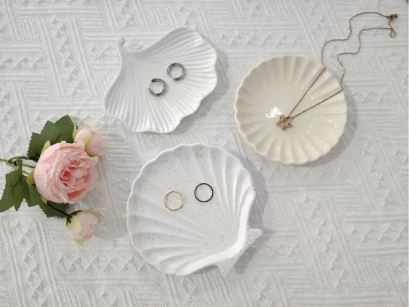 Nihan byf lan tray perhiasan keramik nyipta inspirasi saka segara, nggawe aksesoris panyimpenan keramik. Model Starfish nampilake desain sing luwih sregep, telung dimensi, nalika model cangkang mbentuk tekstur alami, loro digawe kerajinan kanthi pembakaran keramik sing apik banget. Iki sabenere toko muni, kalung, lan potongan perhiasan cilik liyane. Desain retro kasebut nggambarake ambane mewah, nggawe tabel klamben lan sink, ngilangi keruwetan lan nggawe tray saka romance ing saben dinten lan dekorasi ruang.